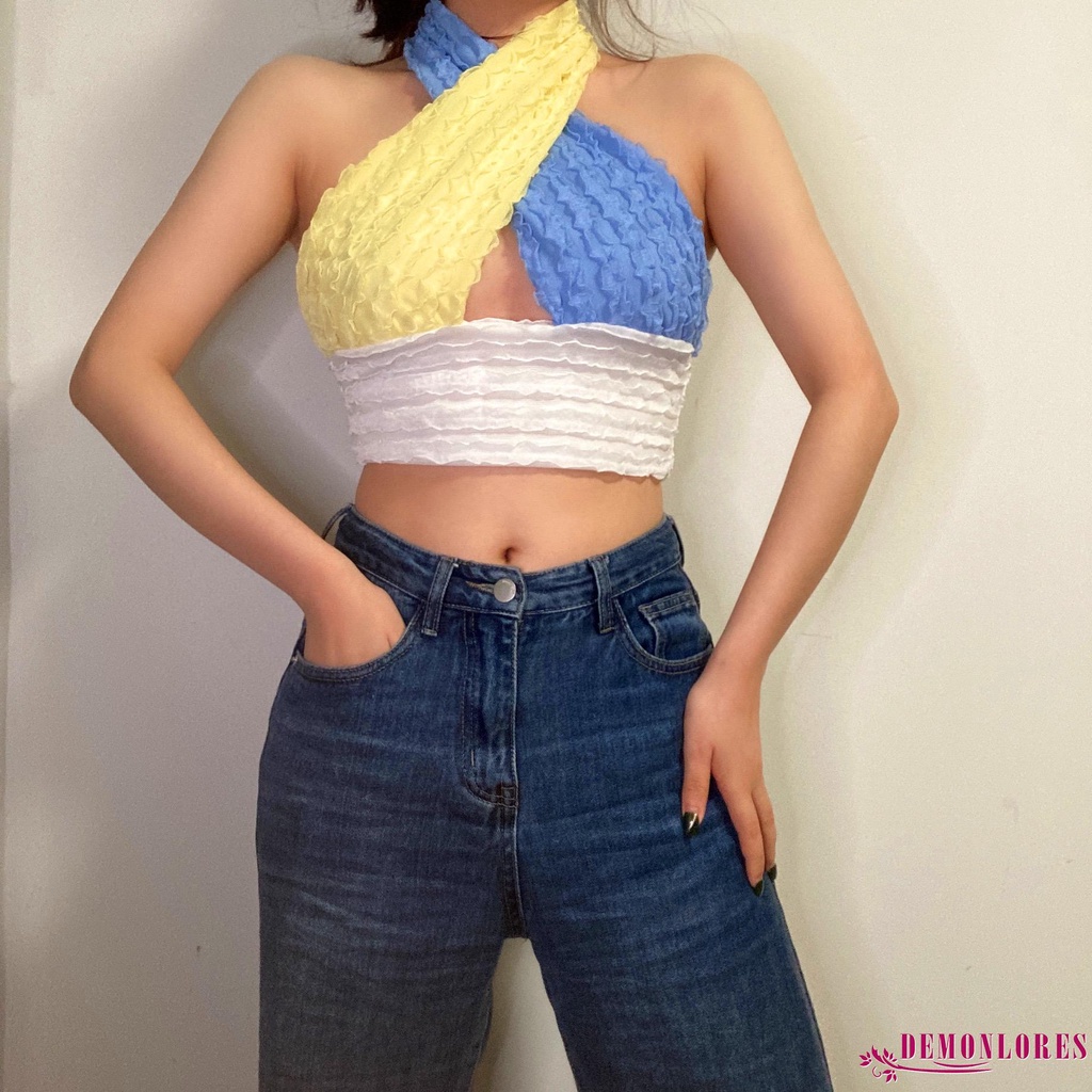 Thiết kế thời trang: Áo yếm ba lỗ ôm vừa vặn có màu tương phản / màu trơn và cổ chữ V đan chéo, giúp bạn trông thật gợi cảm và sành điệu.