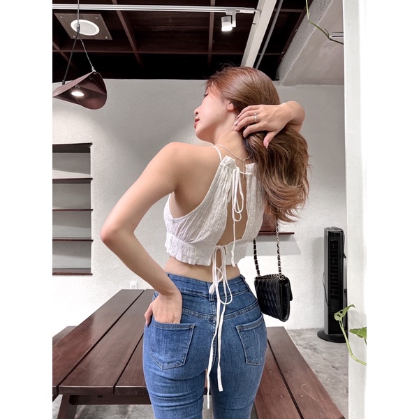 Giới thiệu ÁO YẾM TRẮNG THẮT DÂY LƯNG HỞ VẢI IN MỜ HOẠ TIẾT NỔI