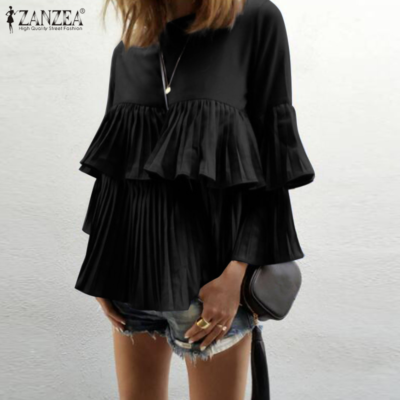 Giới thiệu Áo ZANZEA Cổ Tròn Tay Áo Loe Xếp Ly Thời Trang Nữ