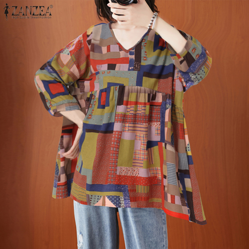 Giới thiệu Áo ZANZEA Dài Hết Tay Dáng Rộng Cổ Chữ V Phong Cách Cổ Điển In Họa Tiết Hình Học Cho Nữ Giới