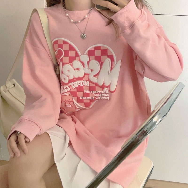 Giới thiệu Aphrod Áo Len Dài Tay In Hình Trái Tim graffiti Thời Trang Xuân Thu Mới Cho Nữ