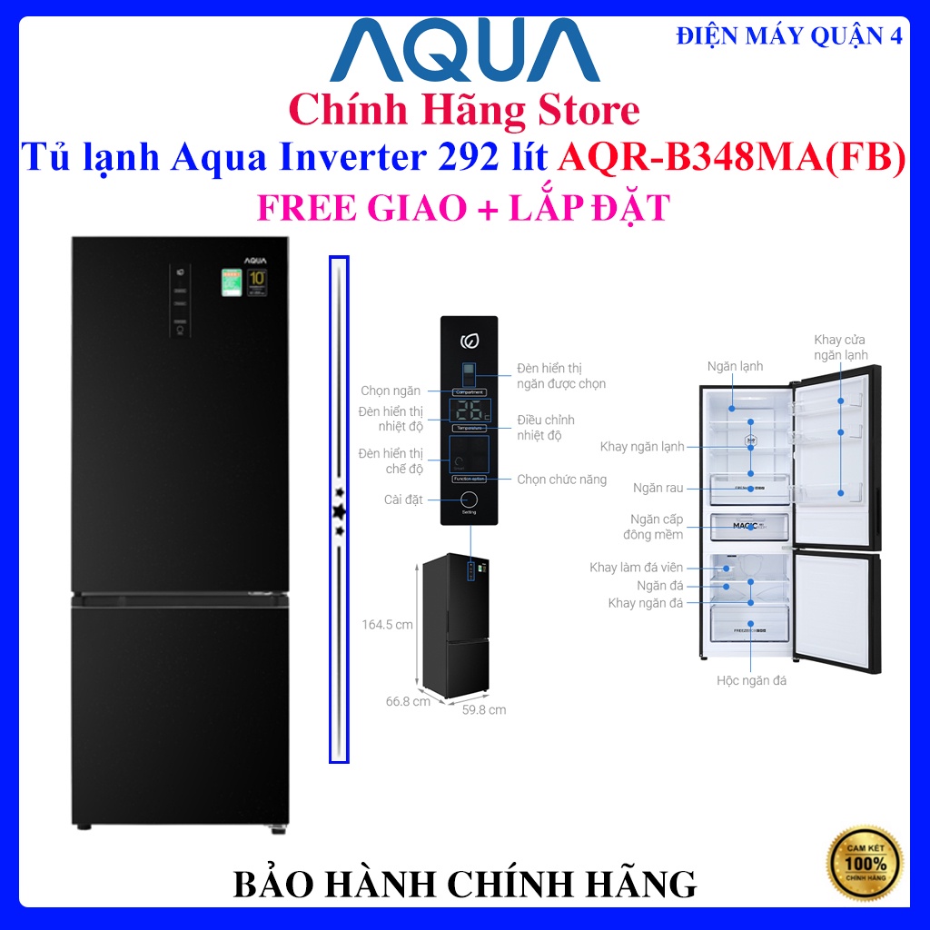 Giới thiệu [Aqua B348MA] Tủ lạnh Aqua AQR-B348MA(FB) Inverter 292 lít , BẢO HÀNH CHÍNH HÃNG 24 THÁNG