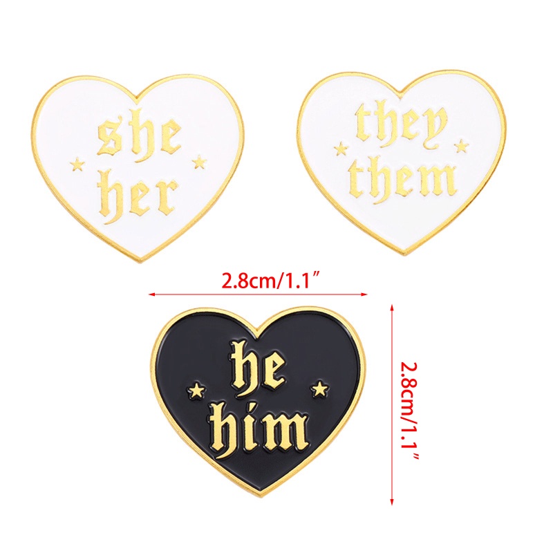 Pronoun Pin Love Heart Enamel Ba lô Ghim Quần áo Trâm cài áo Tình yêu Trái tim Ghim vú Đặc điểm: Ghim Pronouns là chúng / chúng hoặc anh ấy / anh ấy / cô ấy, 3 loại nhận dạng giới tính bình thường hóa việc sử dụng pronoun. Ghim men trái tim: trâm cài trái tim có màu sắc khác nhau, màu sắc tươi sáng, bạn có thể kết hợp khi muốn thể hiện phong cách riêng hoặc bạn có thể chia sẻ với bạn bè tốt. Vật liệu bền chất lượng cao: Ghim tráng men dễ thương được làm thủ công với hợp kim và thiết kế vân da với các đặc điểm nổi bật. Sự khéo léo thủ công độc đáo làm cho bề mặt trâm cài sáng và đẹp, không dễ phai màu và bền. Kết hợp hoàn hảo với áo phông, khăn quàng cổ, áo khoác, áo len, váy, mũ và các loại quần áo hoặc ba lô khác của bạn. Tốt nhất:.Nó sẽ là một sự hoàn hảo để cung cấp những chiếc ghim tráng men dễ thương này cho người khác hoặc chính bạn vào ngày trở về trường, kỷ niệm, sinh nhật, tốt nghiệp, Giáng sinh hoặc cuộc sống hàng ngày.