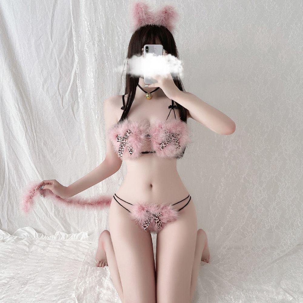 Giới thiệu AROMA Bộ Đồ Lót Hóa Trang Tai Mèo Phối Lông Ba Điểm Độc Đáo Cho Nữ