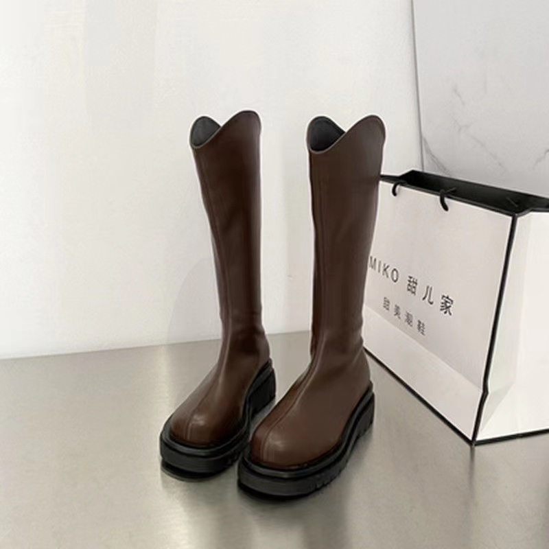 Giới thiệu Atikota Giày Bốt Cổ Cao Mũi Tròn Đế Dày Phối Khóa Kéo Sau Thoải Mái Chống Mài Mòn Thời Trang Cho Nữ