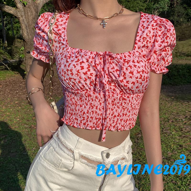 Thông số sản phẩm: Dành cho: Nữ Loại sản phẩm: Áo Chất liệu: Sợi Polyester Chiều dài tay áo: Tay áo phồng Loại cổ áo: Cổ áo vuông Họa tiết: Hoa Màu sắc: Đỏ / Xanh dương Thiết kế: Nếp gấp, nơ Size: S / M / L Phong cách: Retro, thời trang