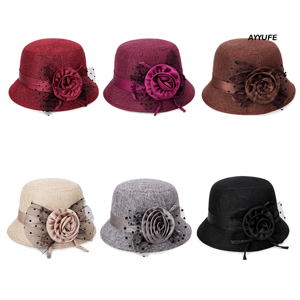 Giới thiệu [AYYUFE] Mũ Bucket Che Nắng Ngoài Trời Phối Lưới Chấm Bi Và Hoa Cho Nữ