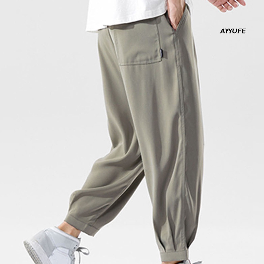 Thời Trang Nam > Quần Dài/Quần Âu > Khác > [AYYUFE] Quần Chạy Bộ Ống Rộng Vải Lụa Lạnh Mỏng Lưng Thun Phối Dây Rút Và Túi Thời Trang Mùa Hè Dành Cho Nam Giớ
