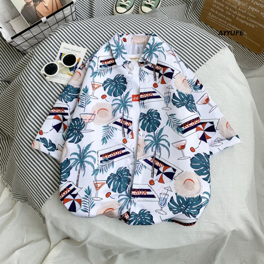 Giới thiệu [Ayyume] Áo Sơ Mi Đi Biển Dáng Rộng Cổ Bẻ Tay Lửng Cài Khuy Hình Cây Dừa Cho Nam
