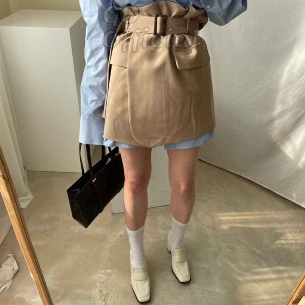 Giới thiệu B20|Set bộ công sở nữ áo sơ mi trơn có túi dài tay, chân váy cạp cao chữ A dáng rộng suông xanh vàng GD Official