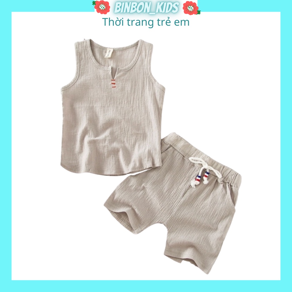 Bộ ba lỗ sát nách đũi cho bé trai và bé gái Binbon kids, Bộ quần áo trẻ em chất đũi nhăn cực mát Cho bé 8-23kg