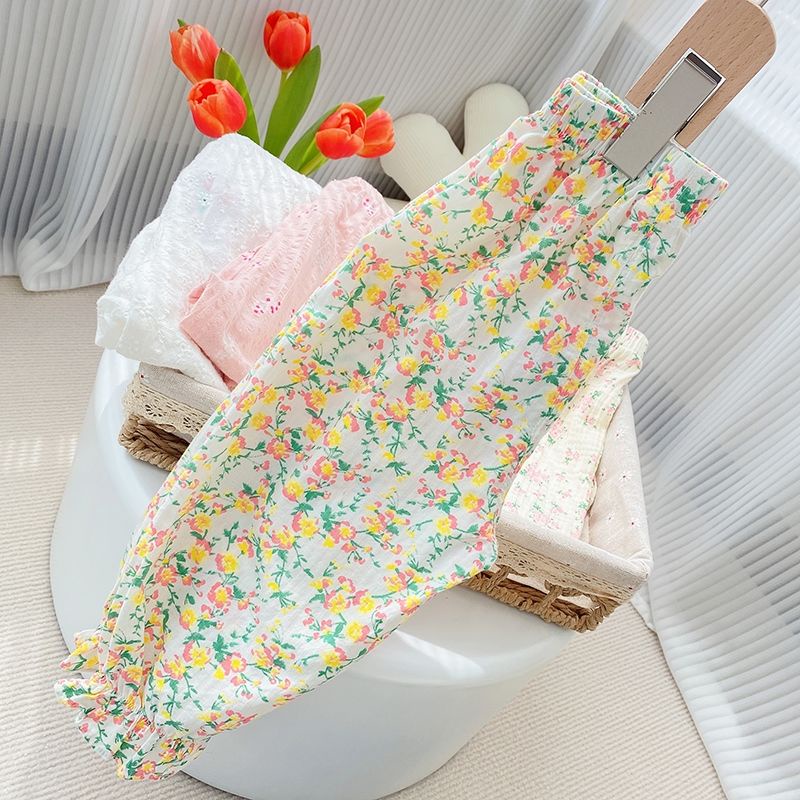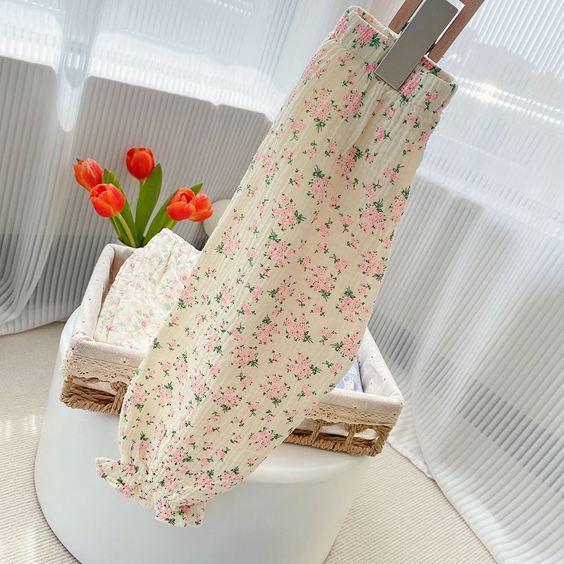 Thời Trang Trẻ Em > Trang phục bé gái > Quần > [Babycat Hàng Có Sẵn Quần Ống Rộng Cotton Siêu Mỏng Dây Rút Thêu Hoa Phong Cách Nhật Bản Hàn Quốc Chống Muỗi Thời Trang Mùa Hè Giản Dị Dành Cho Bé Gái