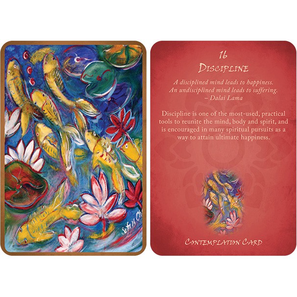 Bộ bài Buddhism Reading Cards gồm 36 lá được chia thành 4 nhóm: sự thật, sự thuần khiết, chiêm nghiệm và tu luyện. Sách hướng dẫn đi kèm gồm 104 trang in màu với chỉ dẫn và kiến thức.