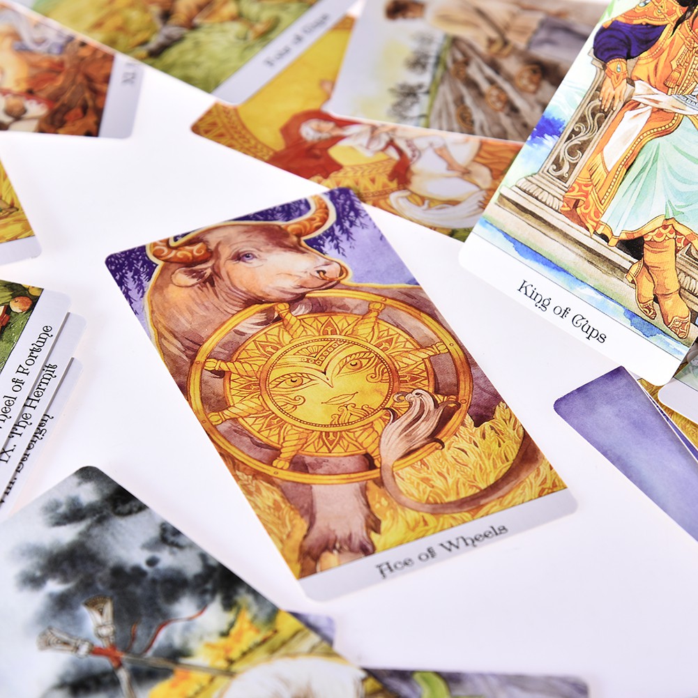 Về sản phẩm: Bộ bài tarot Golden Wheel nổi bật, một biểu tượng thiêng liêng của nghiệp, và các vòng đời vô hạn truyền dẫn The Fool về cuộc hành trình của mình qua Major và Minor Arcana. Bao gồm 78 thẻ và sách hướng dẫn 84 trang.