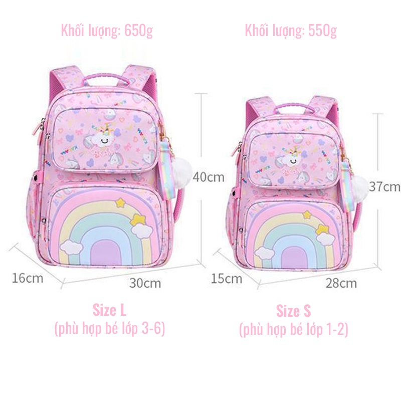 Giới thiệu Balo chống gù cho bé tiểu học cặp đi học cho trẻ em cấp 1 [ cầu vồng ] KKM PSB104