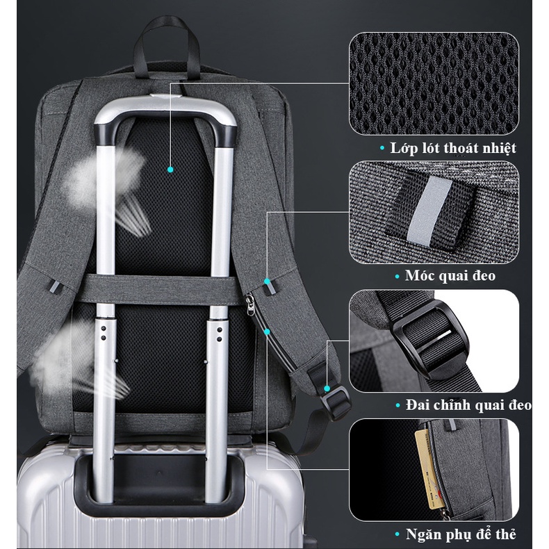 Balo chống trộm cao cấp, đựng laptop, máy tính bảng, điện thoại tiện lợi. Kiểu dáng thời trang nam nữ, balo có khóa số đặt mật khẩu, chống trộm, bảo vệ đồ vật bền trong balo. Khả năng chống nước tốt, bền bỉ, có cổng usb sạc điện thoại và cổng tai nghe thông minh, giúp bạn vừa nghe nhạc, vừa sạc điện thoại trong khi chuyển.
