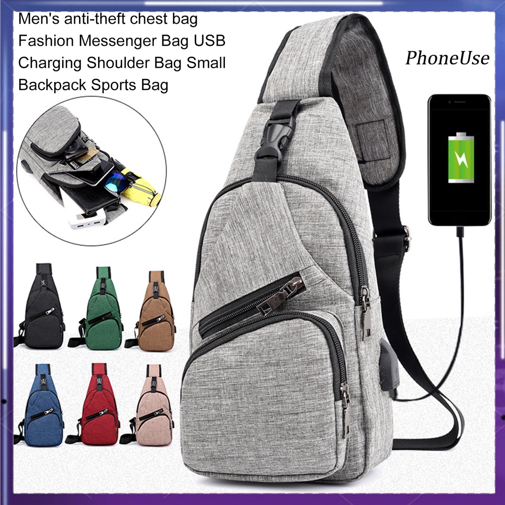 Giới thiệu Balo đeo chéo da PU có khóa kéo kèm cổng sạc USB thời trang cho nam