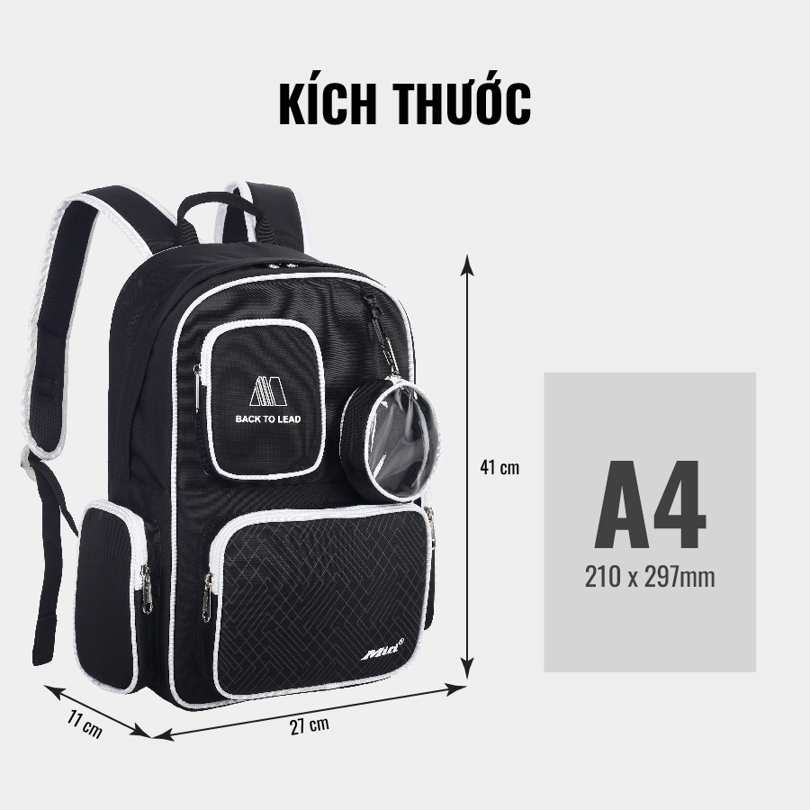 Giới thiệu Balo Đi Học Nam Nữ Màu Đen MITI BL22152 balo chống nước giá rẻ nhiều ngăn Phong Cách Hàn Quốc Trẻ Trung Cá Tính
