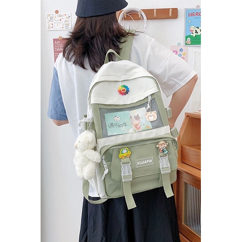 Giới thiệu Balo Nữ Đi Học, Ba Lô Nữ Hàn Quốc, Vải Dù Chống Nước, Đựng Vừa A4 ( TẶNG KÈM PHỤ KIỆN ) BALO-568