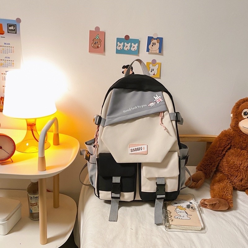Giới thiệu Balo Quảng Châu Guofei 2 Túi Phối Màu Pastel Chất Vải Chống Thấm 2810 Shop Cặp Nữ Đi Học Thời Trang (Tặng Móc Vịt Cute)