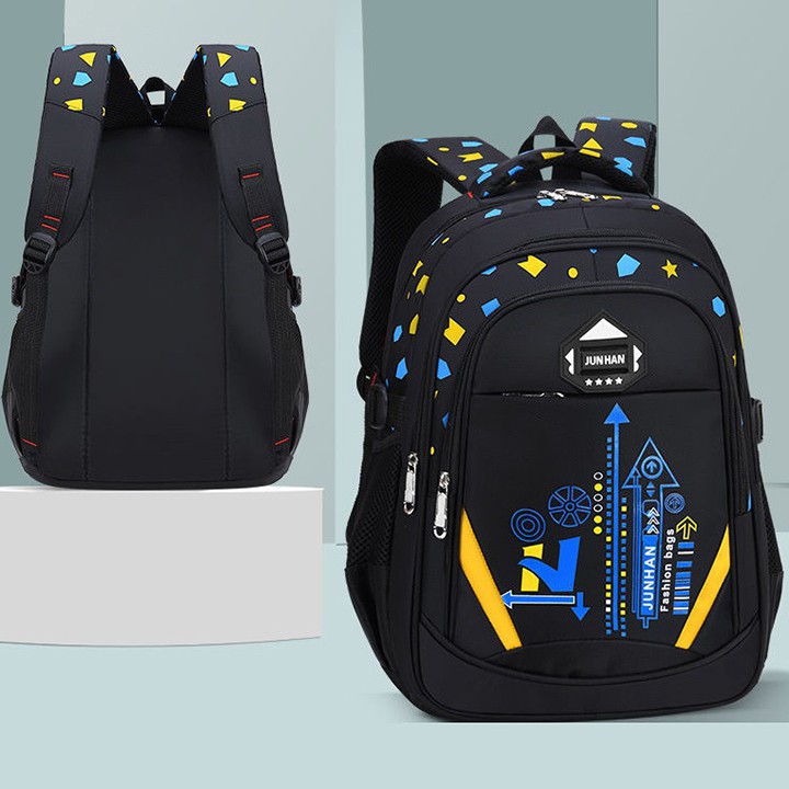 Thiết kế : nhiều ngăn rộng rãi, ngăn chính, ngăn phụ, ngăn chưa đồ, ngăn đựng hộp bút, ngăn đựng bình nước bên sườn. Dây đeo: có thể tùy chỉnh dây đeo, chất liệu đặc biệt đáp ứng đàn hồi làm giảm bớt căng thẳng, mồ hôi, mang theo sự thoải mái hơn khi đến trường hay đi học về. Chất liệu sử dụng đã qua kiểm định thân thiện môi trường không độc hại, siêu di động, thiết kế thông gió đầy đủ, an toàn với trẻ em, siêu nhẹ, quai đeo có lỗ thông thoáng khí giúp trẻ thoải mái khi đeo. Balo Học Sinh Siêu nhẹ chống thấm chống nước cao cấp được làm từ Vải cao cấp mềm nhẹ không thấm nước. Do đó, khi đi dưới trời mưa sách vở của bé cũng không bị ướt. Balo cặp học sinh được thiết kế tỉ mỉ và cẩn thận đến từng mũi may nên có độ bền rất cao. Với quy trình nghiên cứu, sản xuất và phát triển sản phẩm khắt khe của tiêu chuẩn công nghệ cao những chiếc cặp mang đầy đủ những đặc điểm nổi bật hỗ trợ hệ cơ xương các bé trong quá trình sử dụng. Được thiết kế bằng những chất liệu cao cấp, siêu nhẹ, chiếc cặp có trọng lượng chưa đến 1kg, giúp giảm tối đa trọng lực tác dụng lên đôi vai bé nhỏ của các bé. Với những ưu điểm nổi trội của Balo học sinh nam nữ chống thấm chống nước cao cấp mang lại, các bậc cha mẹ hoàn toàn yên tâm về sức khỏe hệ cơ xương của các con khi đến trường. THÔNG TIN SẢN PHẨM: Balo Học Sinh Siêu nhẹ - Trọng lượng siêu nhẹ, chỉ tầm 550 glàm giảm tải sức nặng lên đôi vai các em