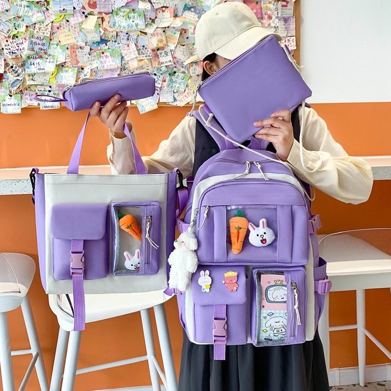 Set 4 món balo túi tote bóp ví học sinh đi học - DAIMEBAG