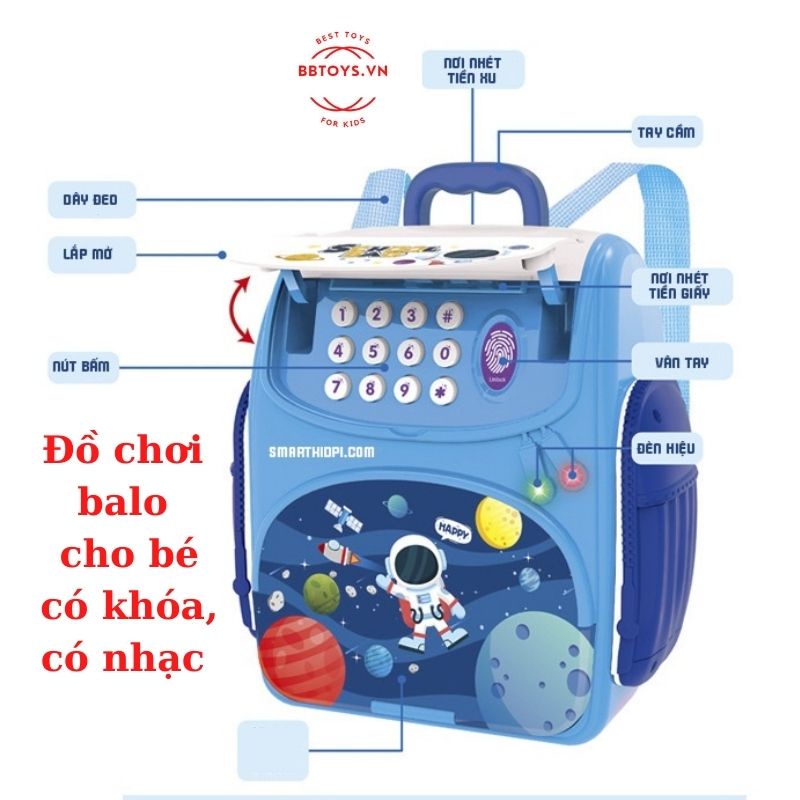 Giới thiệu Đồ chơi Balo tiết kiệm cho bé có khóa, đèn, nhạc (tặng kèm 3 pin AA) (BBTOYS: 51)