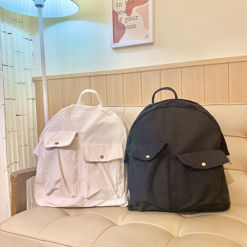 Giới thiệu [TẶNG TÚI TOTE BAG 99K] Balo vải canvas màu đen có ngăn nhỏ tiện lợi Tadi house