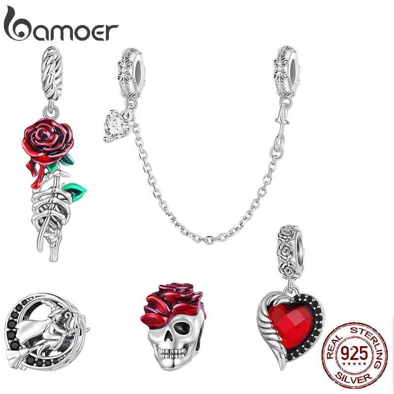 Giới thiệu BAMOER Hạt Xâu Chuỗi bạc 925 Hình Đầu Lâu Máu Hồng Và Máu Trang Trí Halloween
