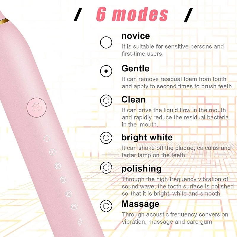 Sắc Đẹp > Vệ sinh răng miệng > Bàn chải đánh răng điện & Phụ kiện > Bàn Chải Đánh Răng Điện Sonic Thông Minh 6 Chế Độ Chống Thấm Nước IPX7 Kèm 4 Đầu Bàn Chải