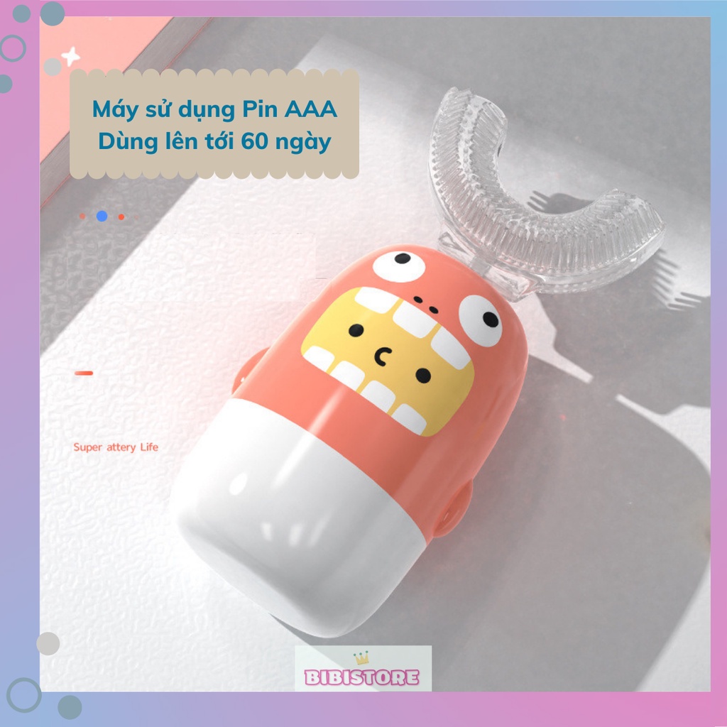 Giá trải nghiệm để bé được sử dụng Bàn Chải Điện Chữ U Đánh Răng Tự động MONSTER BOY Chất liệu Silicon cấp thực phẩm cho bé 2~16 tuổi (tặng kèm kem đánh răng tạo bọt). SIÊU MỀM- KHÔNG TỔN THƯƠNG NƯỚU- SẠCH MẢNG BÁM- NGỪA SÂU RĂNG