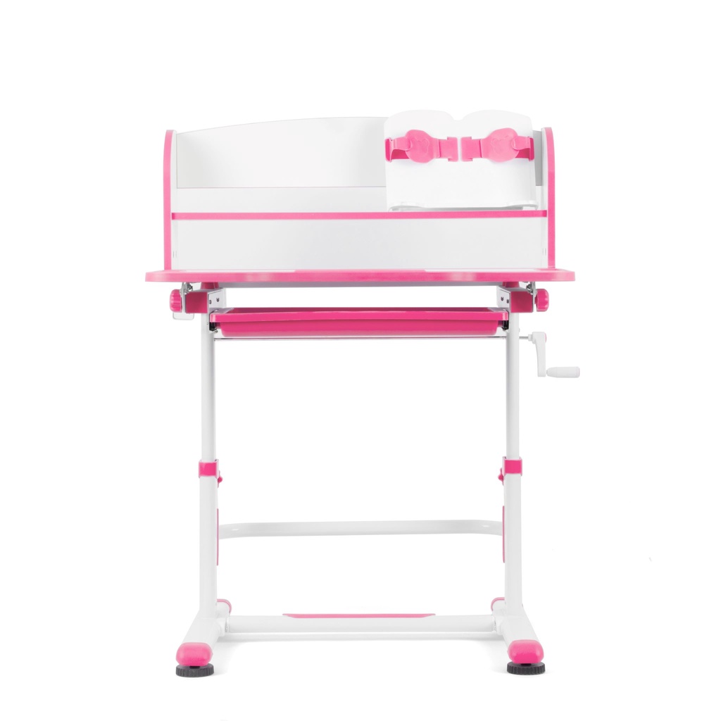 2. THÔNG TIN SẢN PHẨM - Kích thước bàn: 77*56*52-76cm - Nâng hạ độ cao từ 52 - 75cm bằng trục quay cơ học; - Khung thép chắc chắn, phun sơn tĩnh điện chống gỉ; - Gỗ công nghiệp MDF phủ Melamine chống chói, hạn chế trầy xước, hạn chế bám bụi; - Mặt bàn điều chỉnh độ nghiêng từ 0 - 45 độ phù hợp với các hoạt động học tập, đọc sách, vẽ tranh; - Kệ sách 2 tầng, ngăn chứa đồ rộng tới 54cm; - Ghế nâng hạ độ cao từ 30-42cm theo cơ thể trẻ; - Chân bàn có thể điều chỉnh dùng được cho cả mặt bằng nghiêng.