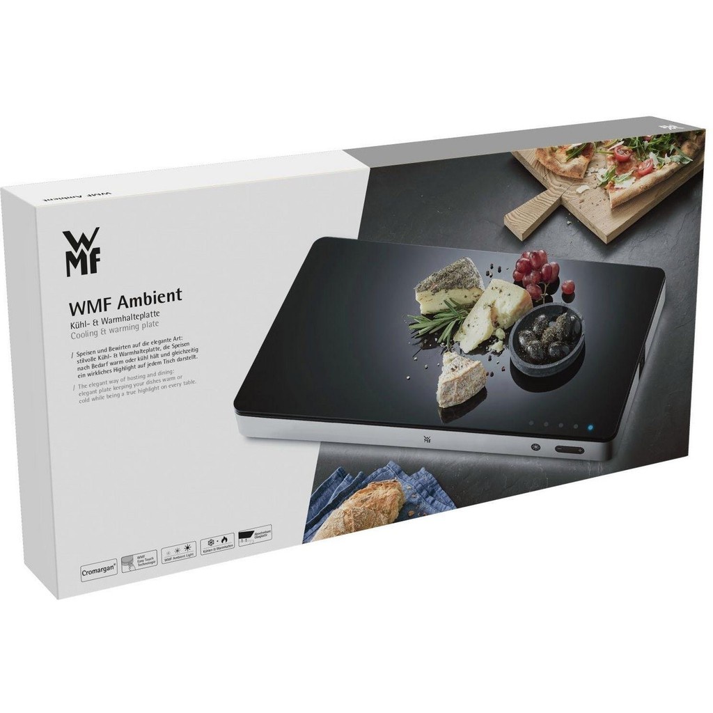 Đặc điểm Bàn làm mát và hâm nóng thực phẩm WMF Ambient Cooling & Warming Plate - Bàn làm mát và hâm nóng thực phẩm WMF Ambient Cooling & Warming Plate thanh lịch có tác dụng để giữ ấm hoặc làm mát thực phẩm. - Bàn làm mát và hâm nóng thực phẩm WMF Ambient Cooling & Warming Plate có 4 cài đặt nhiệt độ trong khoảng từ 50°C đến 110°C để tất cả các loại thực phẩm đều được giữ ở nhiệt độ ăn tối ưu. - Nhờ các yếu tố làm mát riêng biệt, phô mai, dù là trái cây hoặc món tráng miệng có thể được giữ tươi và ở nhiệt độ tối ưu trong tối đa hai giờ. - Vỏ làm bằng Cromargan® thanh lịch với bề mặt kính chất lượng cao có thể tháo rời để dễ dàng vệ sinh. - Bạn có thể bật đèn Ambient bất cứ lúc nào để chiếu ánh sáng vào bữa ăn với ba cài đặt mức độ sáng.