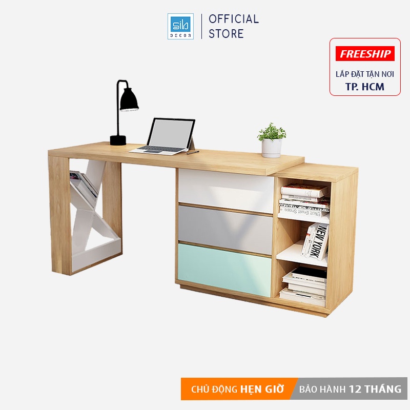 Giới thiệu Bàn Làm Việc Hiện Đại Kết Hợp Tủ Sách Nhiều Ngăn Đa Sắc Màu Phong Cách Bắc Âu SIB Decor (Không Gồm Ghế)