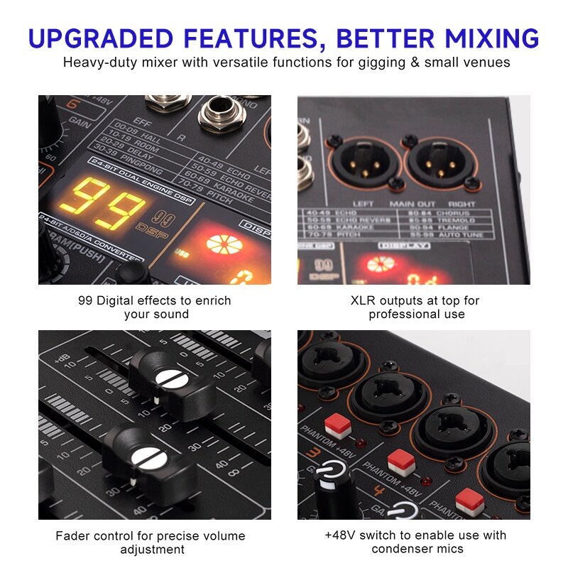 Thiết Bị Điện Tử > Loa > Dây cáp, bộ chuyển đổi âm thanh & video > Bàn Mixer Bộ trộn âm thanh kênh Bộ trộn âm thanh Bluetooth NX800 với USB Audio Interfanc 99 hiệu ứng DSP