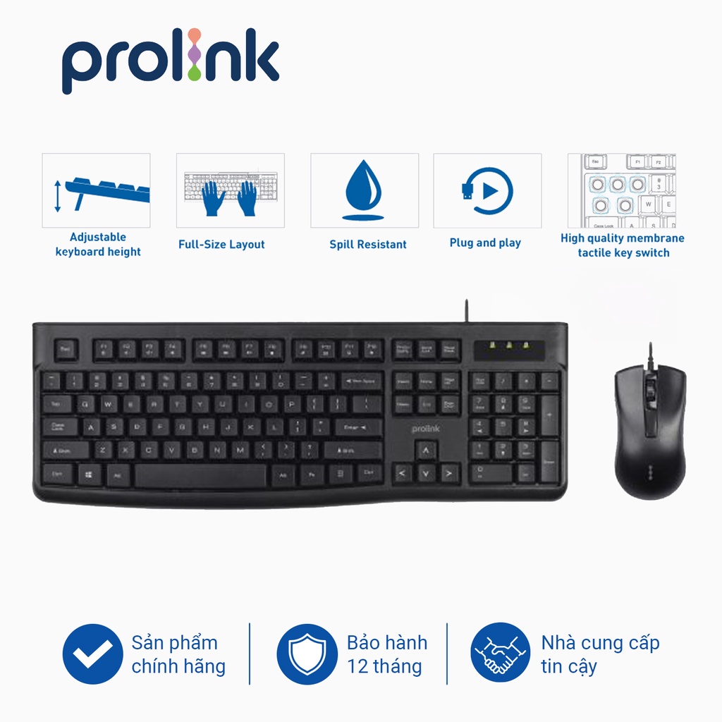 Máy Tính & Laptop > Phụ Kiện Máy Tính > Bàn Phím Máy Tính > Bộ bàn phím chuột có dây PROLiNK PCCM2003 Fullsize cao cấp, chống thấm nước, độ nhạy cao dành cho máy tính, Laptop