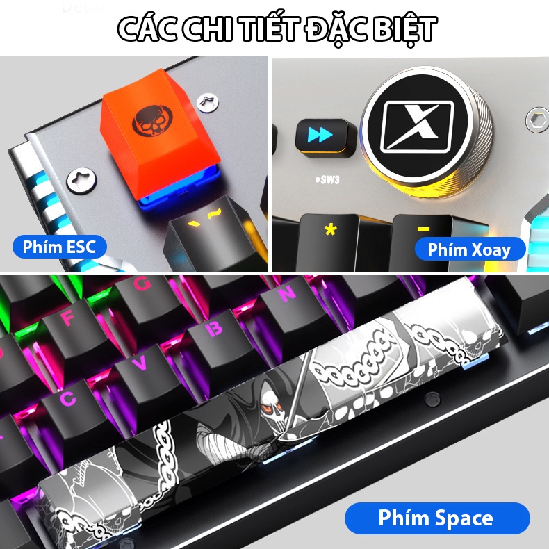 - Chất liệu phím nhựa ABS - Led: LED RAINBOW 20 chế độ - Cáp dài : 1,8m có cục chống nhiễu. - Kết nối : Cổng USB mạ vàng. - Switch : Blue SWitch ( JWH ). - Độ bền : 50 triệu lần nhấn.