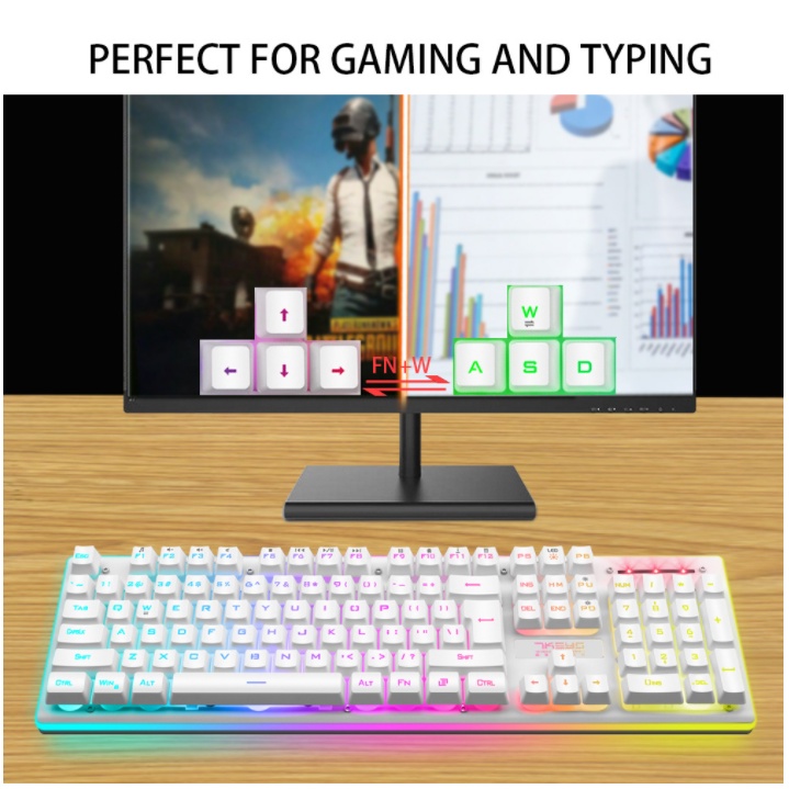CÁC PHÍM CHỨC NĂNG FN + F1: phát nhạc FN + F2: giảm âm lượng FN + F3: tăng âm lượng FN + F4: tắt loa FN + F5: dừng FN + F6: bài hát trước FN + F7: tiếp tục / tạm dừng phát nhạc FN + F8: bài hát sau FN + F9: mở ứng dụng email FN + F10: mở trang chủ khi duyệt web FN + F11: tải xuống FN + F12: mở máy tính FN + Win: khóa Win FN + W: chuyển đổi các phím WASD thành các phím mũi tên