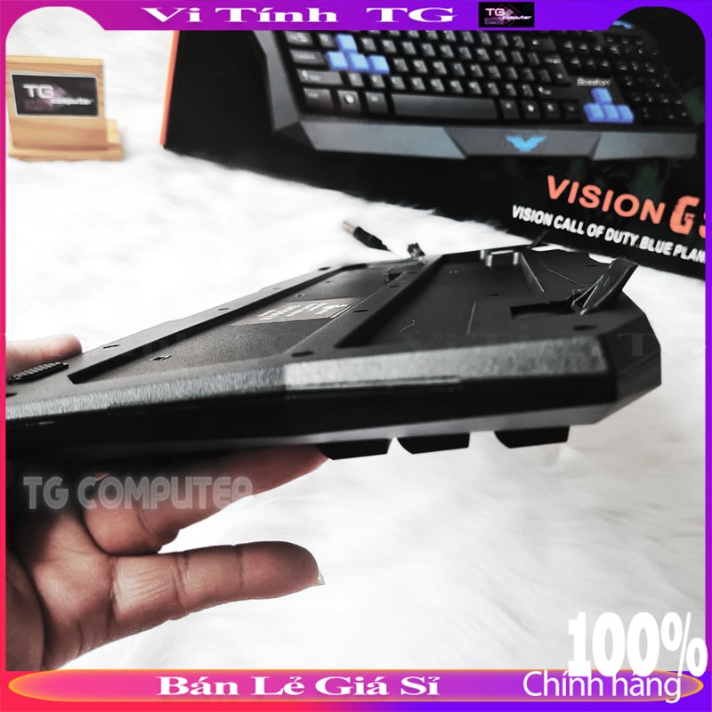 Nơi mua hàng uy tín – chất lượng – giá sỉ ------------------------------------------------------------------------------------ Thông tin kỹ thuật: Sản phẩm: bàn phím máy tính vision G9 bàn phím máy tính có dây Vision G9 có thiết kế hầm hố góc cạnh. bàn phím máy tính bàn kết nối dây qua cổng USB cực dễ, ổn định, chắc chắn ban phim may tinh tiện lợi trang bị 6 phím màu xanh, là những phím di chuyển trong game dành cho các game thủ bàn phím pc văn phòng gắn vào là sử dụng nga, không cần cài đặt