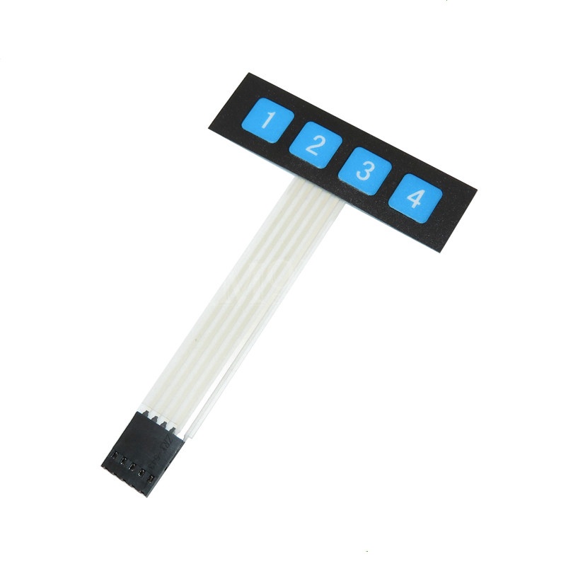 Bàn phím matrix 1x4: 100% Sản phẩm mới và chất lượng tốt 1 * 4 Công tắc màng ma trận với mạch FPC Bàn phím mở rộng máy vi tính chip đơn Được thực hiện chính xác và chuyên nghiệp, hiệu suất ổn định Kích thước tấm lót: 68 * 20mm Tổng chiều dài: 107mm