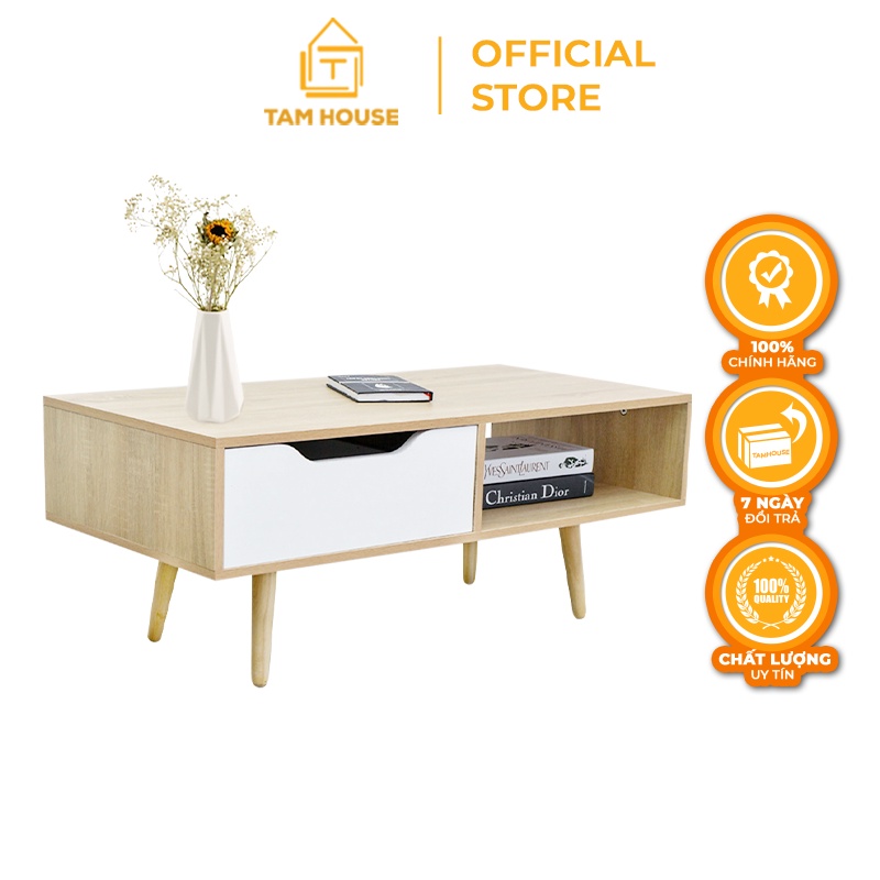 Tên sản phẩm : Bàn trà sofa phong cách Bắc Âu Tâm House HX-TV06 Thương hiệu : Tâm House Kích thước sp : Rộng 100cm . Sâu 48cm.Cao 42cm Chất liệu : Gỗ công nghiệp nhập khẩu phủ melanine chống xước, chống nước Xuất xứ : VIỆT NAM