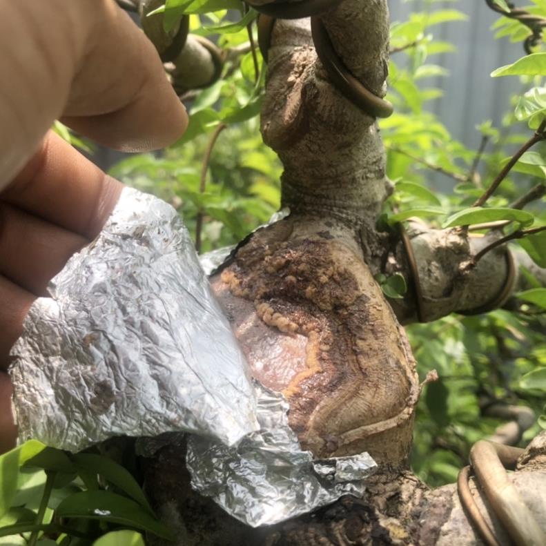 Xin giới thiệu với anh chị em đam mê cây cảnh Bonsai nghệ thuật Cả nước hôm nay shop dụng cụ Bonsai xin giới thiệu với quý anh chị em một sản phẩm không thể thiếu trong việc xử lý cây phôi cũng như cây thành phẩm. Băng dính bạc giúp bảo vệ mặt cắt chống nước chống mối mọt và ánh nắng trực tiếp, có tác dụng làm mát sẹo cây hỗ trợ nhanh liền sẹo. Hướng dẫn sử dụng sau khi tạo thẹo chúng ta làm sạch và phẳng mặt cắt rồi thoa một lớp keo liền sẹo liền ra cho cây 🌳 sau đó dán 1-3 lớp băng dính bạc yêu cầu phải che phủ kín 100% Mặt cắt để chống vào nước, tránh làm ảnh hưởng đến thẹo. Có tác dụng rõ sau từ một đến ba tháng. Khuyến cáo quý anh chị em có thể thay sau ba đến bốn tháng nếu da cây cuốn lên băng dính. trân trọng tư vấn !