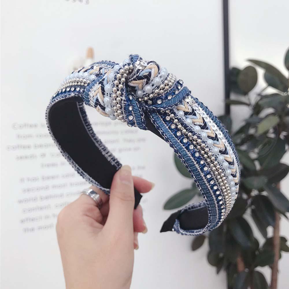 Chất liệu vải Màu xanh lam , sâm panh Kích thước — Một kích thước Giới tính Nữ Đóng gói ' 1 băng đô Băng đô pha lê Vòng cài tóc Phụ nữ Mũ đội đầu Vải thắt nút Hàn Quốc Rộng hoang dã Cá tính Retro Thanh lịch
