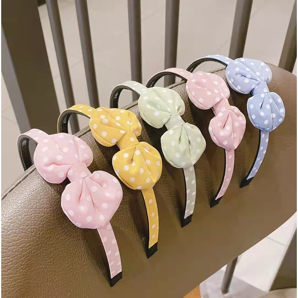 Giới thiệu Băng Đô Cài Tóc Đính Nơ Họa Tiết Chấm Bi Dễ Thương Phong Cách Hàn Quốc Cho Bé Gái