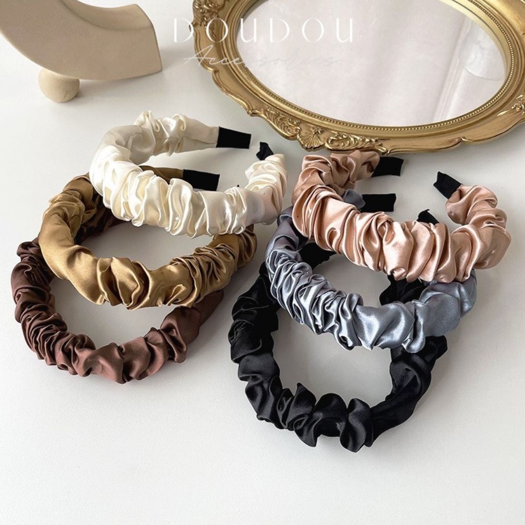 Tên sản phẩm: Băng đô cài tóc DOUDOU Bờm tóc nữ chất liệu vải lụa nhún tiểu thư công chúa phong cách Hàn Quốc vintage thời trang FG019