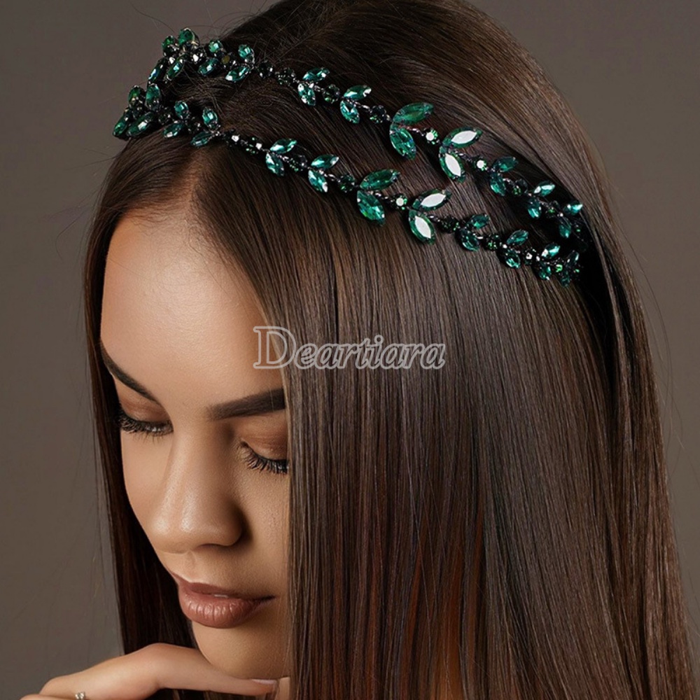 Phụ Kiện & Trang Sức Nữ > Phụ kiện tóc > Cài tóc, vương miện cài tóc > Băng Đô Cài Tóc Hai Lớp Đính Pha Lê Xanh Lá Nhạt Sang Trọng Phong Cách Âu Mỹ Cho Cô Dâu