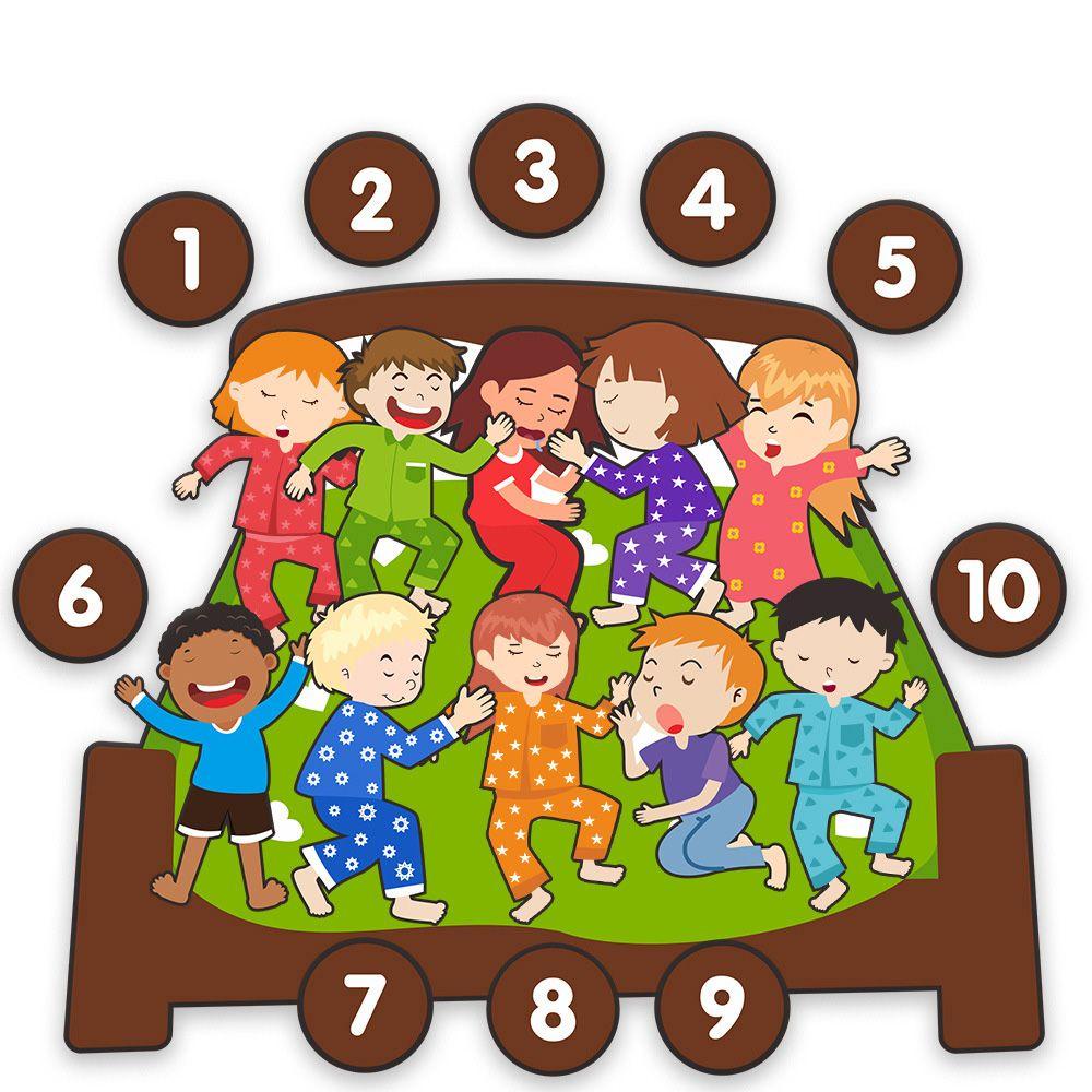 Bộ sản phẩm gồm “ câu chuyện 1 ” 5 ếch , số 1-5, 1 ao ” câu chuyện 2 “ 10 đứa trẻ. số 1-10,1 1 giường