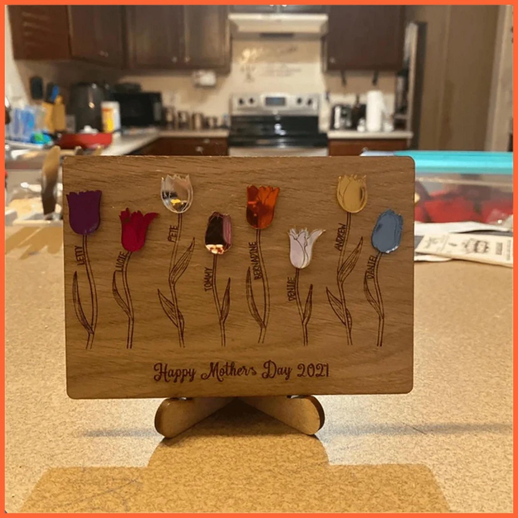 4 、 Tất cả các loại màu sắc: Bảng tin Tulip được thiết kế với 7 màu hoa Tulip chạm khắc. Đó là món quà thích hợp để thể hiện tình yêu chân thành của bạn dành cho mẹ của bạn.