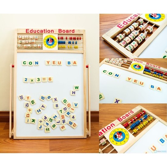 --------------------------------------------------------------------------------- ✔Giới thiệu Bảng Học nam châm 2 mặt - Học chữ cái thông minh Học viết, học toán, tất cả trong 1 bảng (Viết được cả bút dạ và phấn) ✔Bảng Gỗ giáo dục 2 mặt - Học viết, học toán, học chữ tất cả trong 1 bảng (Bảng gỗ giáo dục bán chạy nhất) ✔Từ 3 tuổi, trí não con bắt đầu phát triển mạnh, đây là thời điểm thích hợp để giúp con làm quen với các con số và mặt chữ. ✔Bảng tính 2 mặt đa năng kèm bộ chữ số bằng gỗ gắn nam châm cho bé chắc chắn sẽ đáp ứng được nhu cầu của bạn, giúp bé phát triển trí thông minh một cách toàn diện nhất. ✔ĐẶC ĐIỂM NỔI BẬT của Bảng Học Chữ Cái - Phép Tính Ghép Gỗ Nam Châm 2 Mặt Cho Bé Học Viết Thông Minh ❶ Bảng tính 2 mặt đa năng được làm bằng chất liệu gỗ tự nhiên, mầu sắc đẹp, tươi sáng, phần chữ, số in bằng sơn nước không gây độc hại, không làm ảnh hưởng đến sức khỏe của bé yêu. ❷ Với bộ bảng tính 2 mặt đa năng tiện dụng này con yêu sẽ học được nhiều điều bổ ích, giúp con phát triển khả năng ngôn ngữ, toán học và thỏa sức sáng tạo ❸ Một mặt bằng nhựa từ tính để đính bộ số, bộ chữ cái có gắn nam châm cho con thỏa sức tìm tòi, học ghép vần, học số ... có thể viết được bút dạ lên giúp bạn có thể dạy con được theo nhiều cách. ❹ Một mặt là bảng đen để con tập viết số, viết chữ, vẽ ... bằng phấn ❺ Bảng có chân có thể điều chỉnh về cả hai phía linh động CÁCH CHƠI: - Bé dùng bút để viết vào bảng - Bé tập ghép vần ở bảng chữ của nam châm THÔNG TIN SẢN PHẨM: - Tên sản phẩm: Bảng ghép chữ cái và số 2 mặt bằng gỗ - 01 bảng tính 2 mặt, một mặt bằng nhựa từ tính, một mặt là bảng đen, có đồng hồ, bộ đếm, bộ tính, .... - 01 bảng chữ cái gồm có 26 chữ cái và 20 số, 6 dấu tính (+, -, x, :,=, ?). Mỗi chữ, số đều có màu khác nhau giúp con dễ nhận biết. - 01 bút dạ đen có nam châm. - 01 giẻ lau bảng bằng gỗ và mút. - 01 hộp phấn nhiều màu - Chất liệu: Gỗ gắn nam châm, sơn an toàn - Kích thước bảng viết : 45 x 37 cm - Phù hợp với bé 3 – 6 tuổi #dochoigo #dochoi #bangnamcham #bangghep #bangviet #go #Tre #em #dochoithongminh👉
