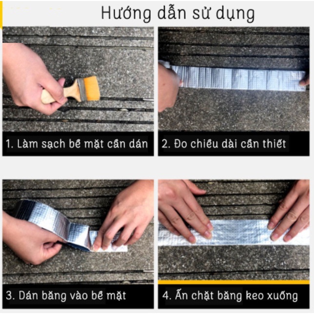 THÔNG TIN CHI TIẾT - Kích thước (theo cuộn) : + 5cm x 5m + 10cm x 5m + 5cm x 3m ( Với đơn vị cm là chiều rộng, m là chiều dài cuộn) - Độ dày : 1mm - Chất liệu : Keo Siêu Dính vỏ ngoài bọc nhôm - Kết cấu: Băng Keo gồm 4 lớp + Lớp ngoài cùng: Màng Nano chống Oxy hóa giúp ngăn chặn tia cực tím + Lớp 2: Màng nhôm nguyên chất giúp phản quang, cách nhiệt cực tốt + Lớp 3: Keo Butyl composite siêu dính không mùi, chịu được nhiệt độ cao + Lớp 4: Màng chống dính bảo vệ keo - Chịu được mọi thời tiết khắc nghiệt ƯU ĐIỂM NỔI BẬT ✅ Băng keo chống thấm công nghệ cao. ✅ Băng keo chống thấm chuyên dụng có tính ứng dụng cao, rất thông dụng ở thị trường nước ngoài do tính hiệu quả, tiết kiệm. ✅ Đáng chú ý nhất là tuổi thọ cao của keo dính lớp vỏ có cấu tạo đặc biệt giữ cho nền keo bên trong luôn kín khí, chịu được lực va đập và các tác nhân thời tiết, tuổi thọ trung bình của băng keo lên đến 10 năm. ✅ Có thể gắn trên tất cả các bề mặt như gỗ, kính, nhựa, tôn, sắt, bê tông, gốm sứ… ✅ Theo đó,một số ứng dụng thường ngày rất hữu dụng như: Bịt ống nước vỡ; Vá mái tôn thủng, dột khi mưa; Bịt vết nứt, hở ống gió; Bịt tường nứt tránh ngấm nước mưa. ✅ Xử lý các vết thủng hoặc bị châm kim đối với Phao bơi, bể bơi cao su, các con thú bơm hơi, các vận dụng gia đình hoặc các đồ chơi bơm hơi khác ... HƯỚNG DẪN SỬ DỤNG Băng keo có thể dính liền trên bề mặt ẩm ướt, tuy nhiên để có thể phát huy hiệu quả cao nhất, thời gian sử dụng lâu dài, Bạn nên làm theo các bước dưới đây: + Bước 1: Vệ sinh bề mặt cần dán sạch sẽ và khô ráo Đối với bề mặt bằng phẳng như ống nước, bạt, xô chậu…, Bạn cần dùng khăn ướt lau sạch bụi bẩn khỏi bề mặt, sau đó để khô mới dán. Đối với bề mặt kim loại như mái tôn, thùng phuy, chậu bằng inox, Bạn làm sạch gỉ sắt, mài cho bề mặt bằng phẳng. Đối với bề mặt như tường, trần bê tông, bể nước, Bạn cần đánh bóng, mài nền để loại bỏ dầu mỡ, nấm mốc, bụi bẩn bằng bùi nhùi sắt hoặc giấy nhám tường và lau lại bằng vải, để khô rồi mới tiến hành thi công. + Bước 2: Cắt băng dán chống thấm theo chiều dài vết nứt LƯU Ý: Sau khi dán, băng keo cần hơn 12h để giãn nở và ăn chắc vào bề mặt. Do vậy, để đạt hiệu quả tốt nhất, Bạn nên để khoảng 24 giờ rồi mới sử dụng vật vừa dán. Keo dán rất chắc, sau khi gỡ sẽ để lại phần lớn lớp keo trên bề mặt vì vậy bạn cần tính toán kỹ lưỡng để tránh những phiền phức không đáng có. #keosieudinh #keotrangnhom #keodantrangnhom #keodannhom #keodantuong #keosieuchac #keochiunhiet #trangnhomchiunhiet #keochongtham #keoieubensieuben #giadung #happy #family #giadinh #dungcu #keo #keodinh #sieuben #tiendung #antoan #sieure